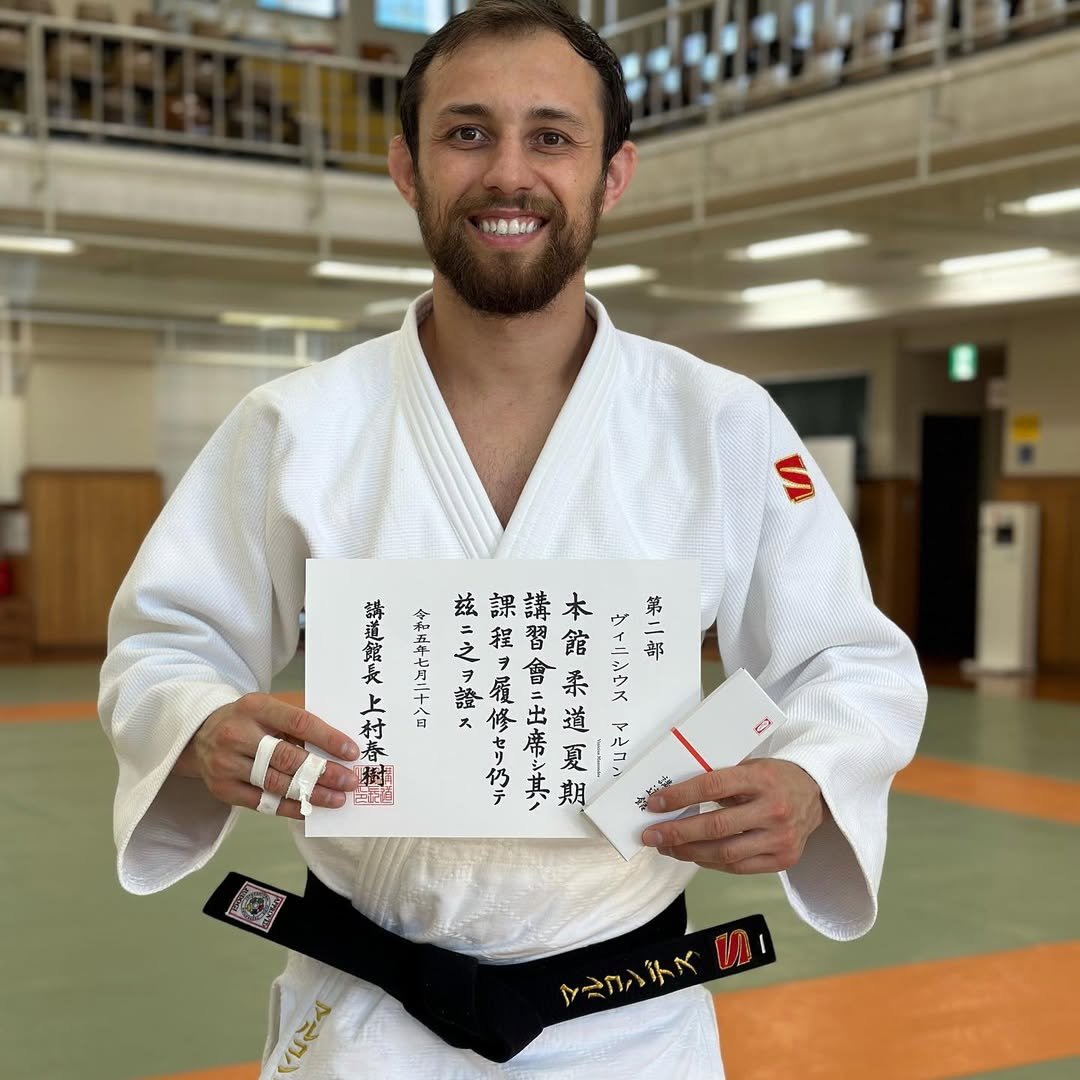 Bacharel em Educação Física e Pós-Graduado em Treinamento Esportivo e Fisiologia do Exercício, Sensei Vinícius Marcondes é autor do livro "Iniciação aos Esportes de Combate" e realizou formação na KODOKAN (Japão, 2023) — a primeira escola de Judô do mundo, fundada por Jigoro Kano.